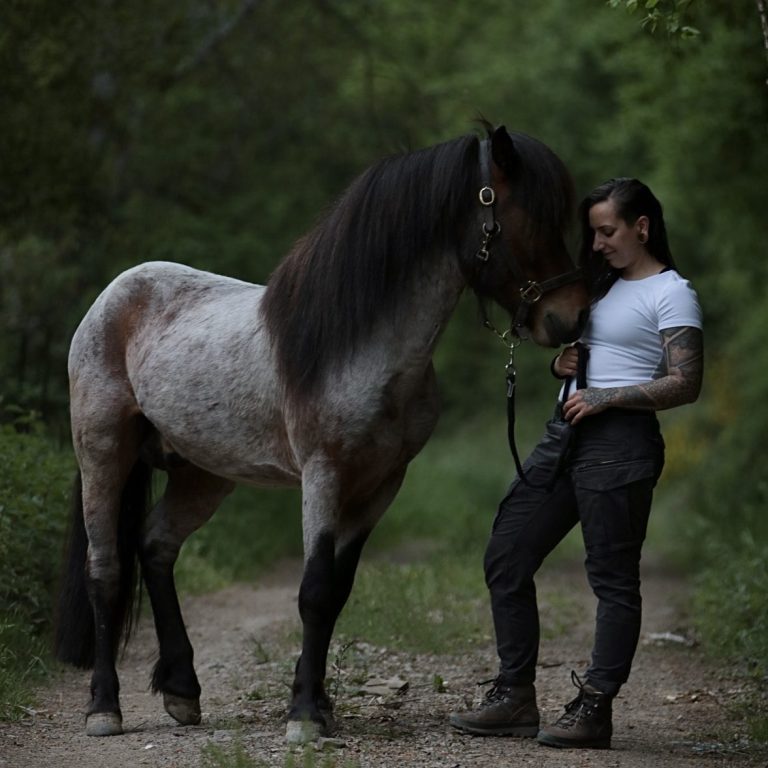 Mein Name ist Jasha Krom, und Pferde begleiten mich seit meiner frühesten Kindheit. Aufgewachsen auf dem Gestüt meiner Mutter – Islandpferde vom Behrenland – war die tägliche Arbeit mit Pferden von Anfang an ein selbstverständlicher Teil meines Lebens. Bereits in meiner Jugend sammelte ich Turniererfahrung im Islandpferdesport und startete erfolgreich in Viergangprüfungen. Nach meiner Schulzeit arbeitete ich mehrere Jahre Vollzeit als Bereiterin, bevor ich mich schließlich selbstständig machte.